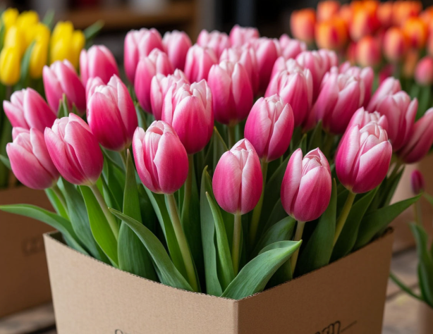 Компания «Тюльпандия» предлагает оптовым покупателям и владельцам розничных магазинов продуманный формат закупки — это профессиональная упаковка тюльпанов по 50 штук оптом. Такая фасовка является золотым стандартом в коммерческой флористике: она позволяет легко вести учет товара, удобно размещать цветы в транспортировочных коробах и обеспечивает оптимальную циркуляцию воздуха внутри связки. Качественная упаковка тюльпанов по 50 штук оптом в специальную бумагу или пленку защищает нежные бутоны от механических повреждений при перевозке и помогает сохранить стебли прямыми и упругими до момента попадания в вазу клиента.